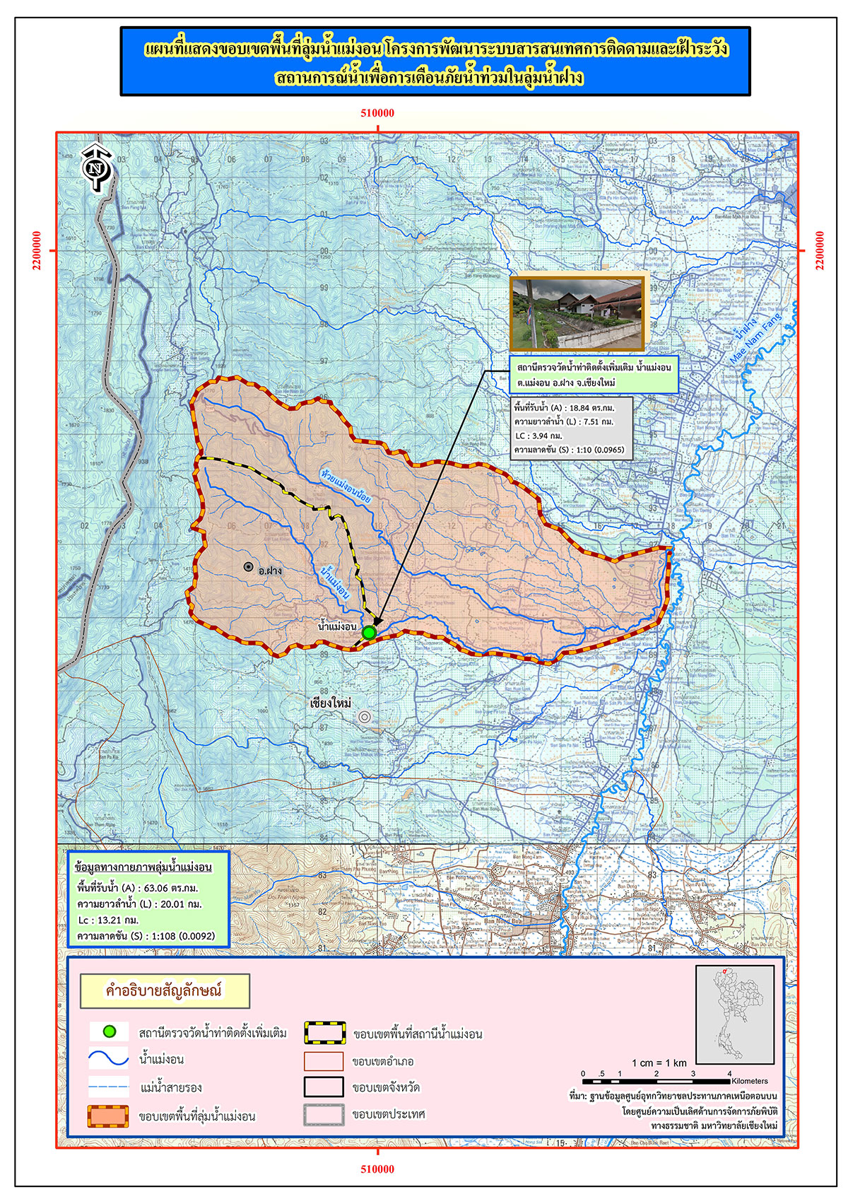 สถานีโทรมาตรวัดน้ำในลำน้ำสาขาของแม่น้ำฝาง STF.01 น้ำแม่งอน - อบต.แม่งอน ตั้งอยู่สะพานบ้านยาง ตำบลแม่งอน พิกัด 19.802211 99.093207